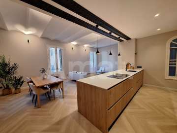 Distribuido en amplio recibidor, que da paso la gran cocina completamente equipada y abierta al comedor, que conecta perfectamente con el salón, creando un ambiente cálido y sofisticado, ideal para disfrutar y recibir invitados. El luminoso salón tiene techos altos (que conservan el encanto histórico del edificio) y salida a balcón de 5 m² con unas vistas privilegiadas a la Catedral de Barcelona, un auténtico lujo urbano. La zona de noche cuenta con 1 dormitorio doble tipo suite con vestidor y baño integrado, 2º dormitorio doble, 3º dormitorio individual, más 2º baño completo.