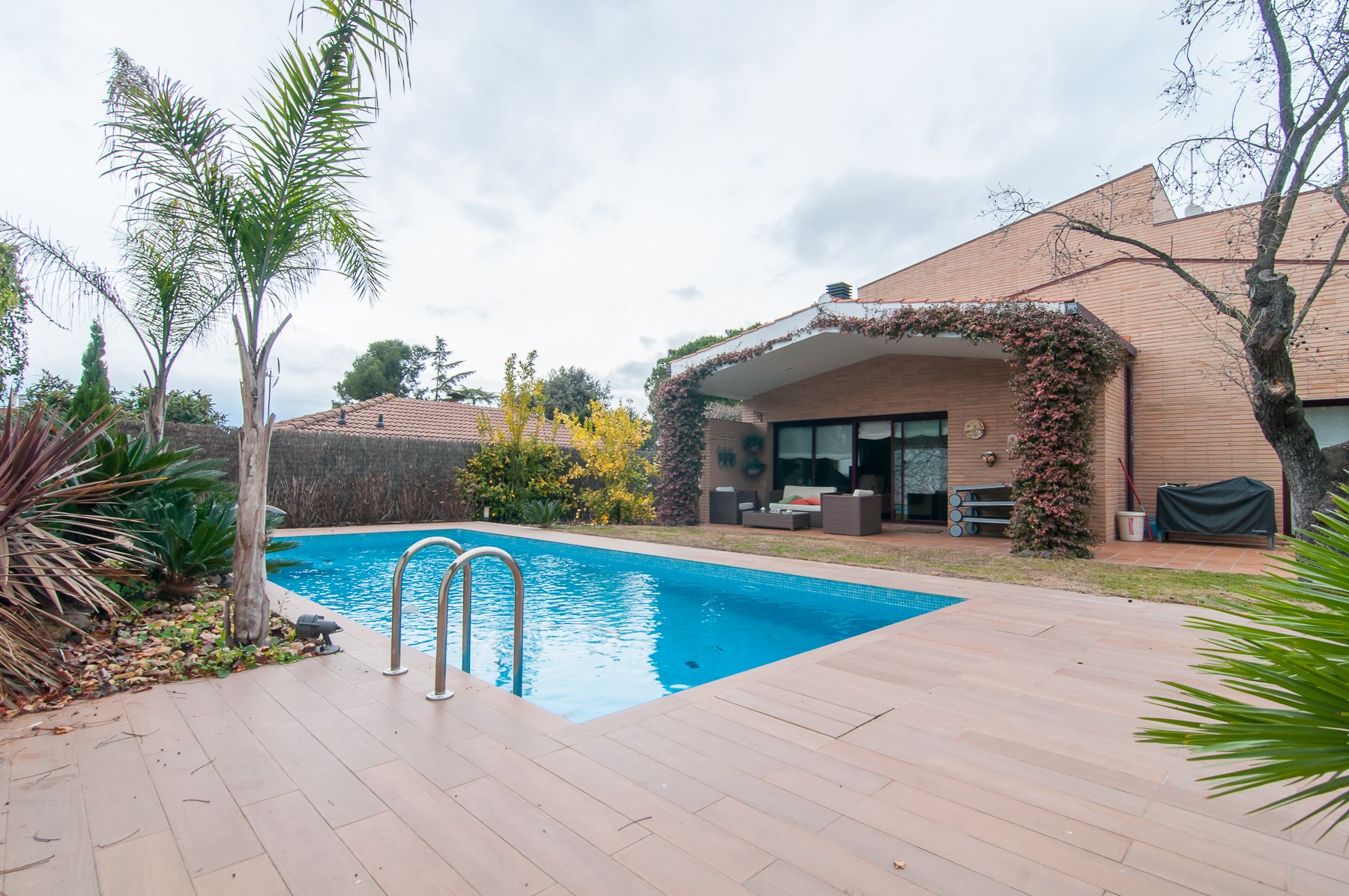 En su exterior destaca un fantástico jardín que, en la parte trasera, envuelve una piscina de tamaño perfecto y con privacidad suficiente para disfrutar de ella durante el verano. El jardín dispone de riegos automático y un espacio destinado a la barbacoa, para poder disfrutar de reuniones familiares y de amigos durante cualquier temporada del año.