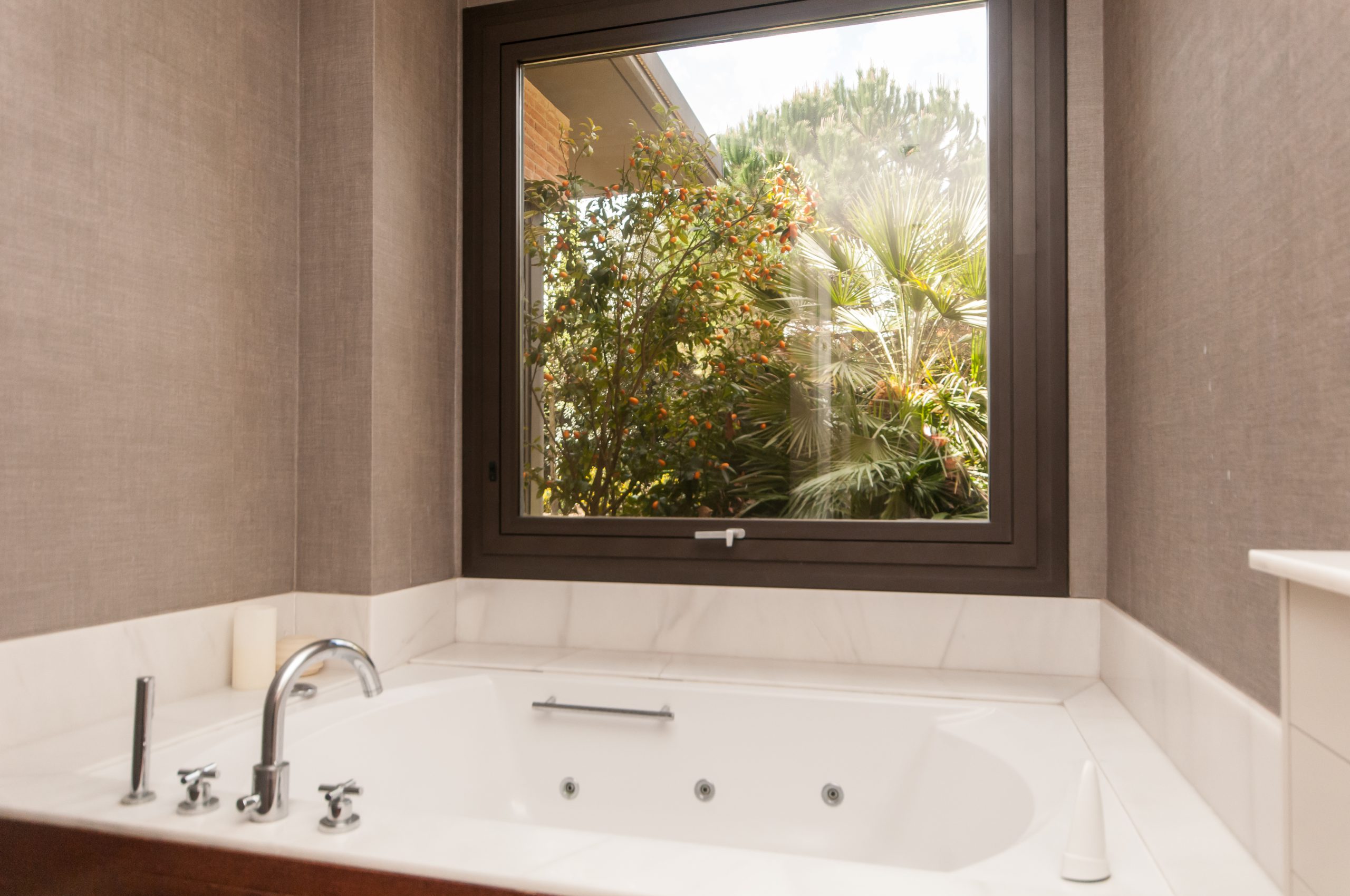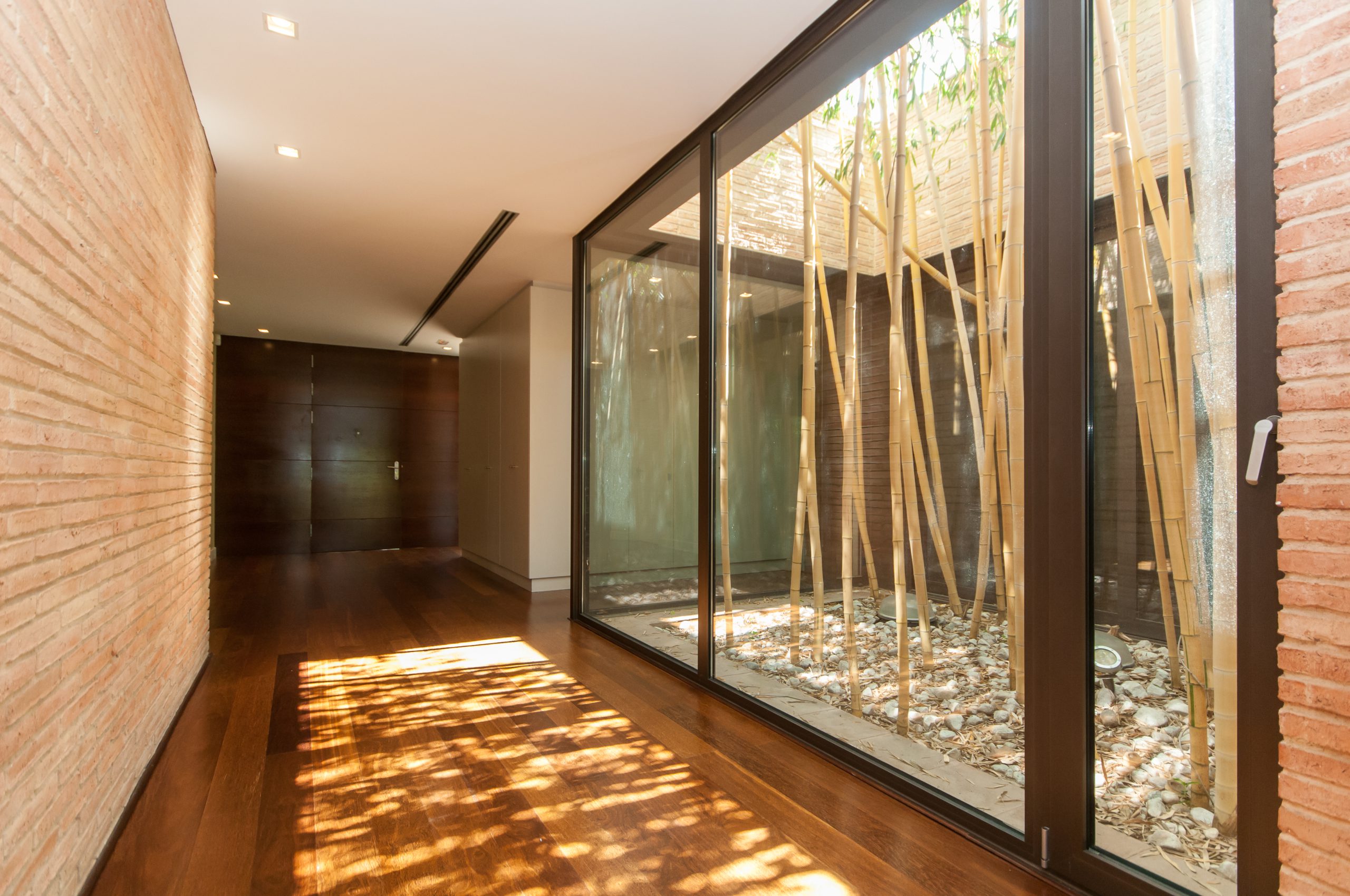 Sus 831 m2 construidos la convierten en una casa grande aunque funcional, con amplios espacios y excelentes acabados. Su distribución, en dos plantas, no impide que se pueda hacer vida solo en la planta baja. En ésta se encuentra la amplia cocina con isla central, el comedor, sala de estar con acceso jardín, 2 habitaciones en suite (una de ellas habitación principal con vestuario) y 2 dobles. Además, un despacho, un baño completo y un aseo de cortesía.