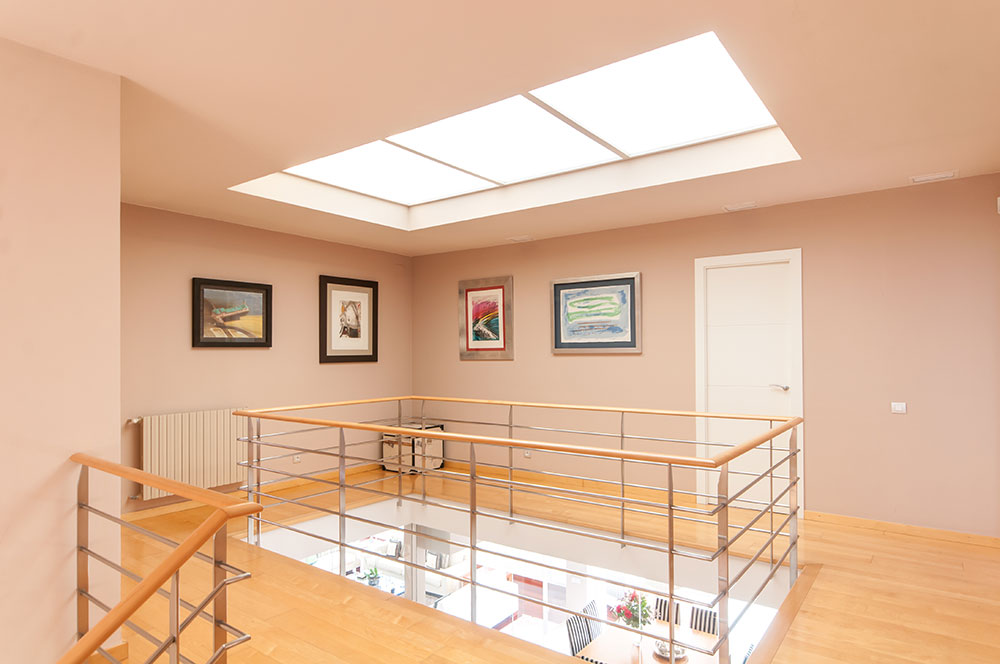 En la primera planta destaca la gran sala de estar, dividida en tres niveles, con terraza; la amplia cocina office y una habitación para el servicio. En planta piso hay 2 suites también con terraza y un gran vestidor, dos habitaciones dobles que comparten un baño completo, y un elegante despacho con chimenea. En la planta semisótano encontramos una preciosa bodega, una sala habilitada para gimnasio y una sala polivalente con acceso al jardín.
