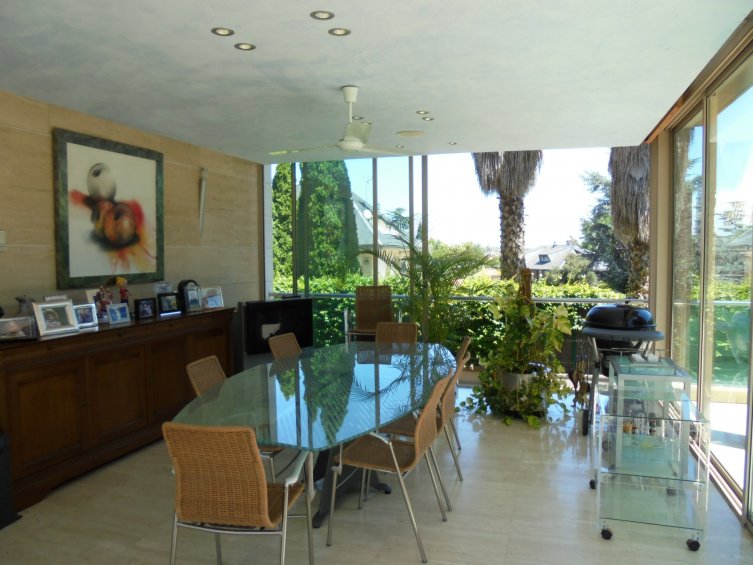 Nosotros somos los privilegiados que en nuestra cartera tenemos una propiedad cuyo exterior da directamente al campo. Sus vistas son espectaculares y ello no merma su gran privacidad en el solar de 1300 m2 donde fue construida. Esta exclusiva finca de 1237 m2 está distribuida en 4 plantas y cuenta con un amplio garaje, con extras como gimnasio, piscina cubierta, zona de servicio y cocina exterior. Su salón, de aproximadamente 80 m2, es una de las partes más destacables de la casa que tiene, además, 5 habitaciones en suite y un estudio. Dispone de acabados de alta calidad, aire acondicionado y calefacción, persianas eléctricas, alarma y combina suelos de mármol en la zona noble y parqué en las habitaciones.