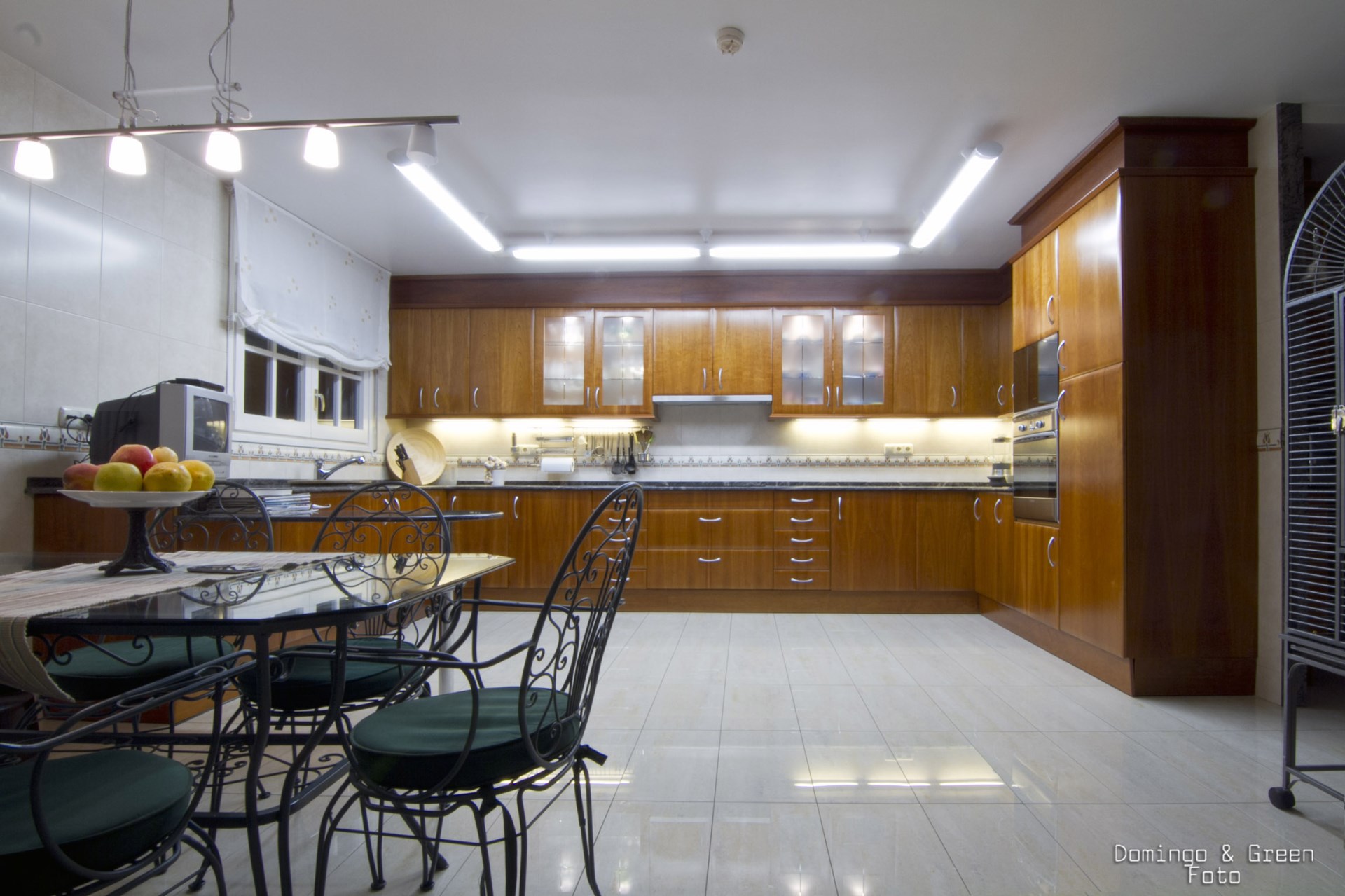 La primera planta presenta una gran cocina office de 40m2 con zona de servicio, y una amplia sala de estar-comedor con chimenea que nos conduce a una soleada terraza.