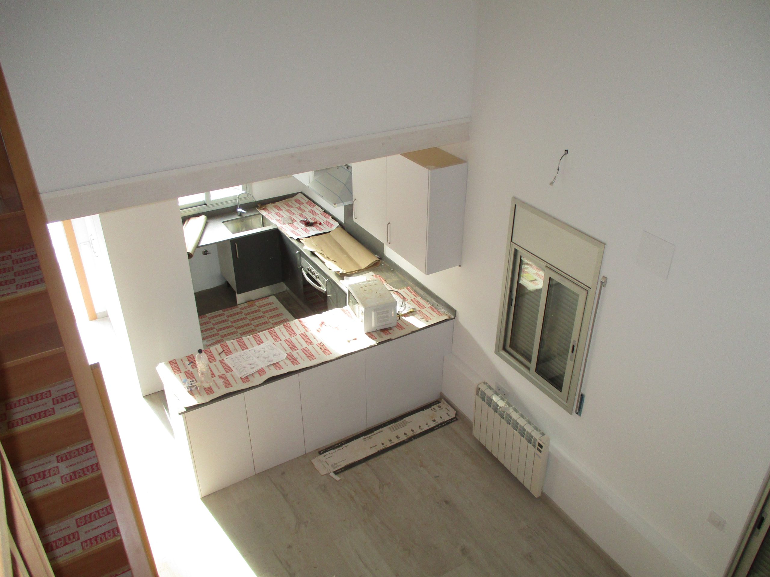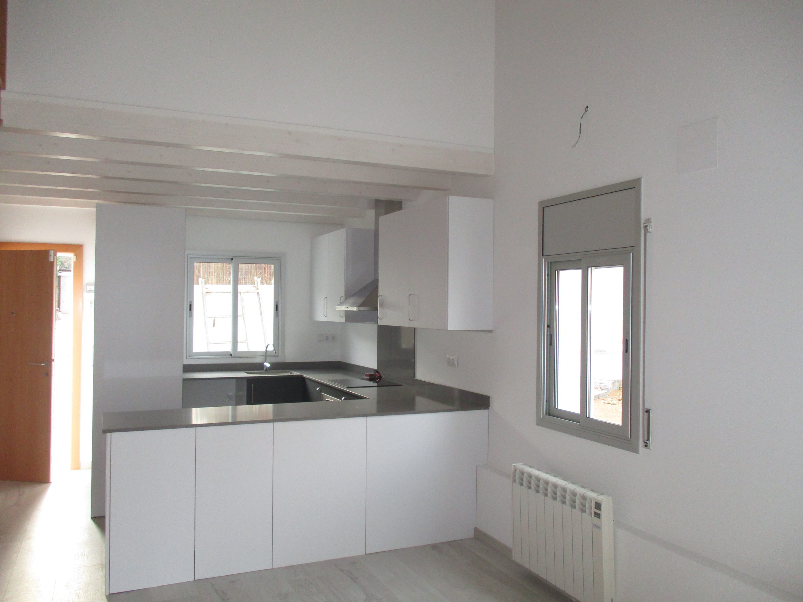En la planta baja hay una sala-comedor con la cocina abierta, lo que confiere un espacio diáfano y luminoso que domina toda la construcción. Cerca hay dos habitaciones individuales y un baño con plato de ducha.