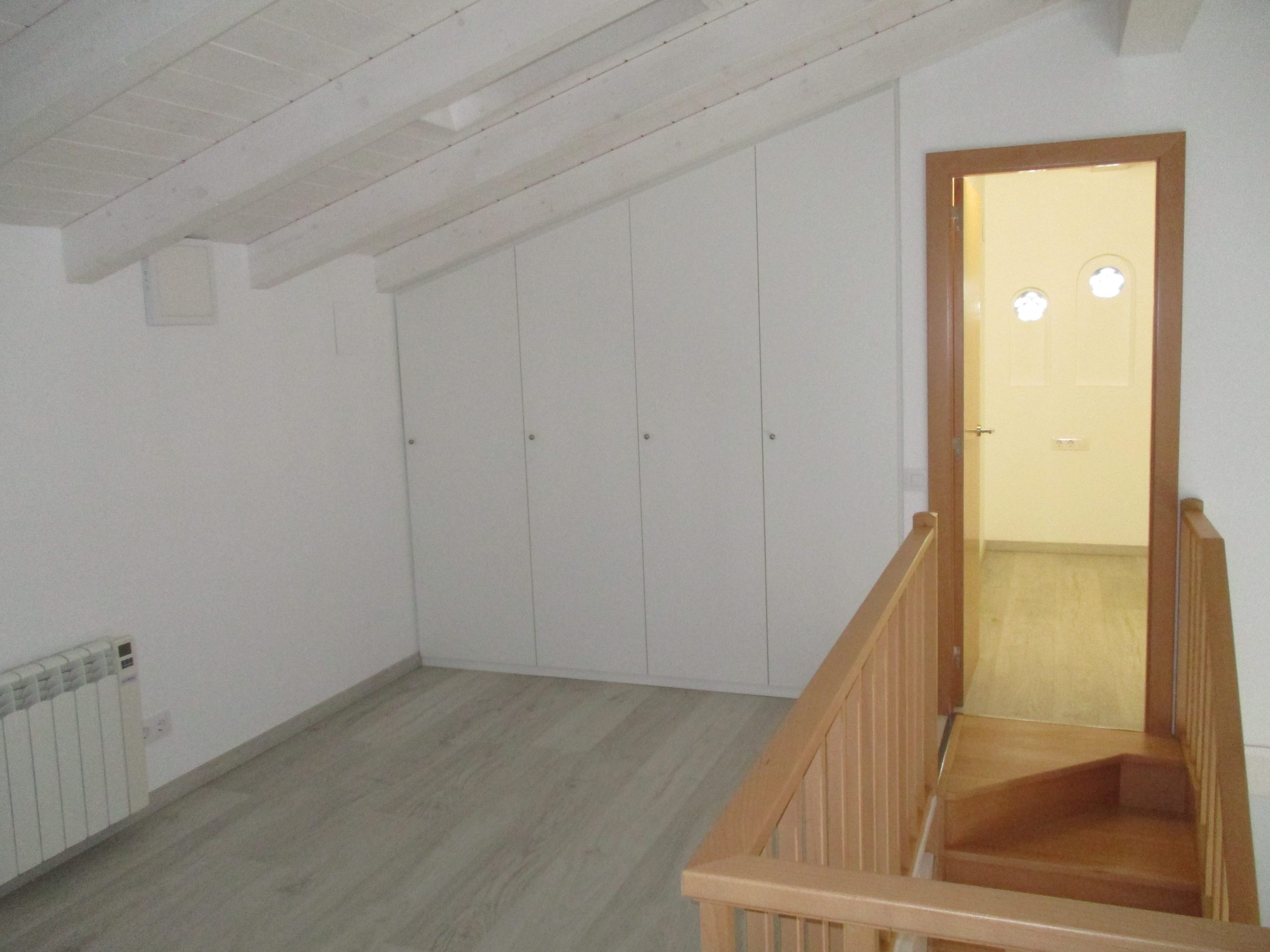 En la primera planta hay un espacio polivalente abierto, una suite con baño con bañera y armarios empotrados. Los techos son de madera con ventanas Velux, suelos de parqué y gres, y cierres de aluminio de doble cristal.