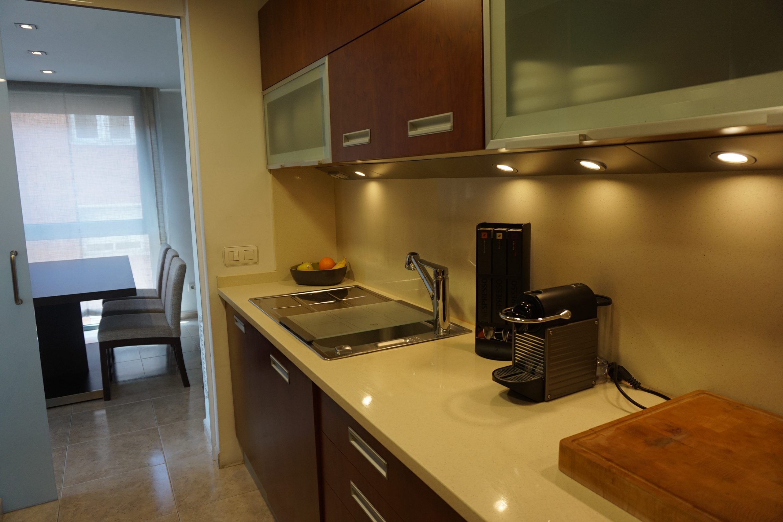 Práctica cocina con zona de aguas integrada, 1 baño y 3 dormitorios (1 doble en suite con baño completo y dos individuales grandes).
