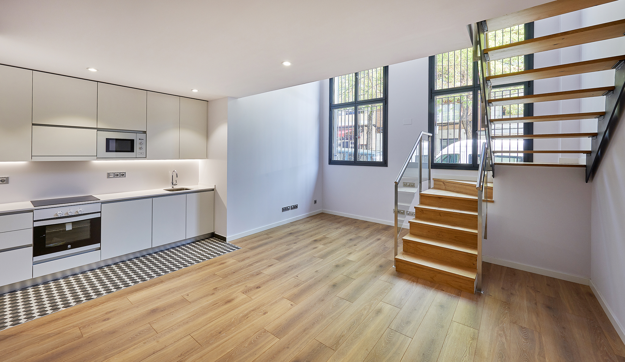 Se trata de una obra nueva, en este caso un piso de 90 m2 divididos en planta baja y altillo.