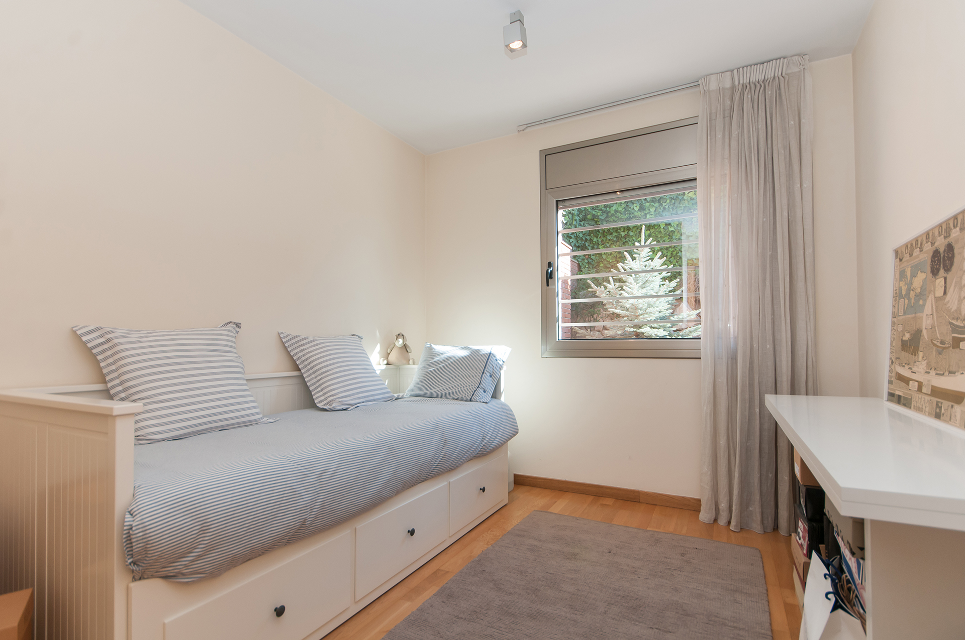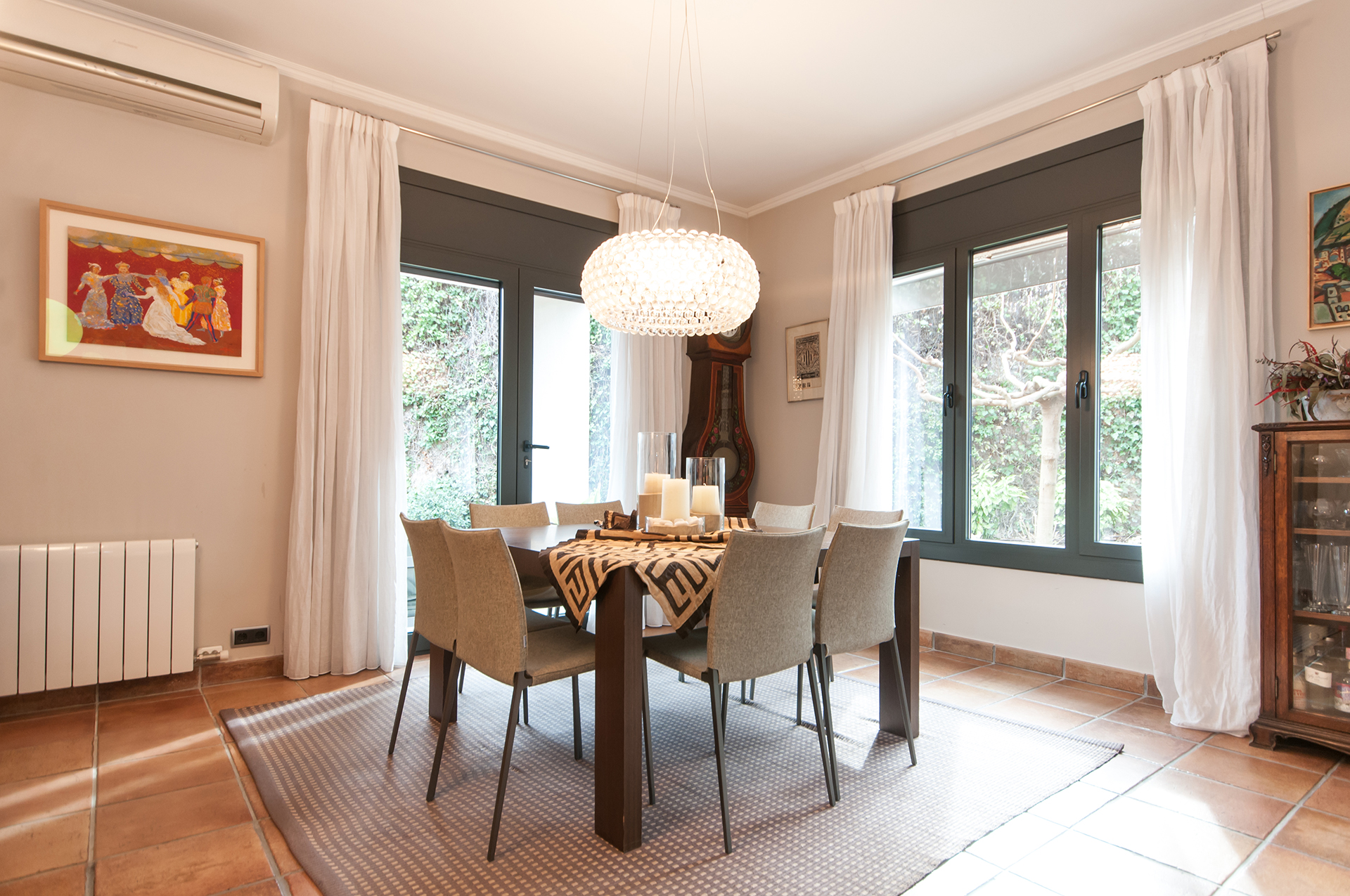 La propietat està dissenyada amb espais amplis i amb molta privacitat i molt assolellada. Dotada d’una distribució molt funcional en el seu interior, d’estil provençal i combinada en el seu interior amb mobiliari modern i clàssic. Hi ha una zona de gimnàs, un pàrquing per a dos/tres cotxes i un traster molt ampli. Gran jardí amb instal·lació de reg automàtic per aspersors i degoteig, zona de barbacoa i dos porxos.