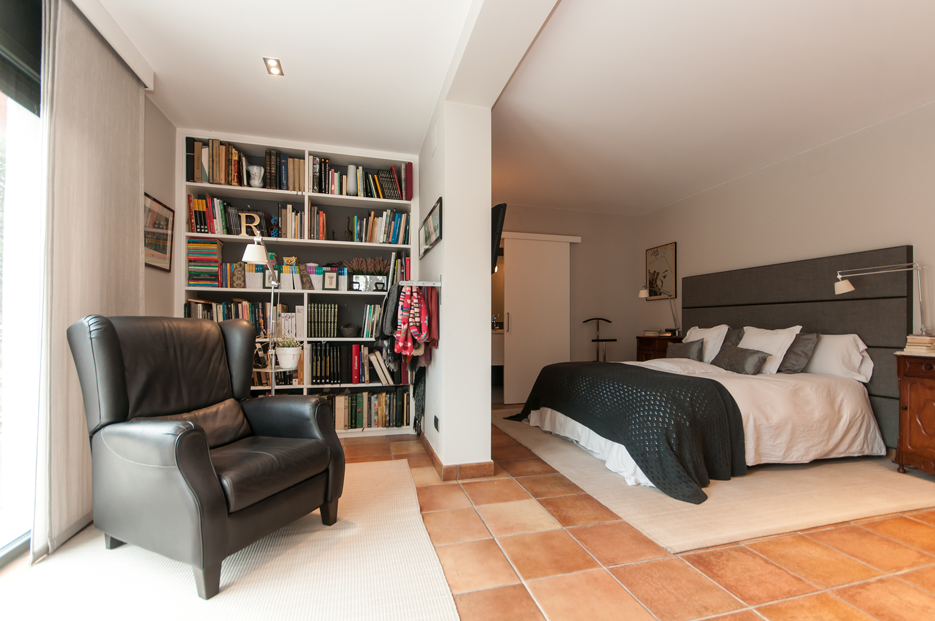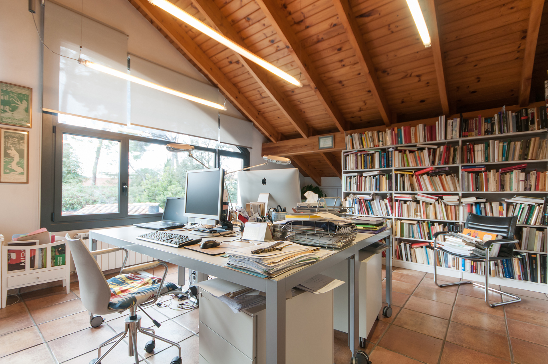 A la planta pis hi trobem 2 habitacions dobles, un estudi-despatx de 43 m2 amb grans finestrals i sostres sota teulada de fusta, un bany complet, un lavabo i una àmplia terrassa.