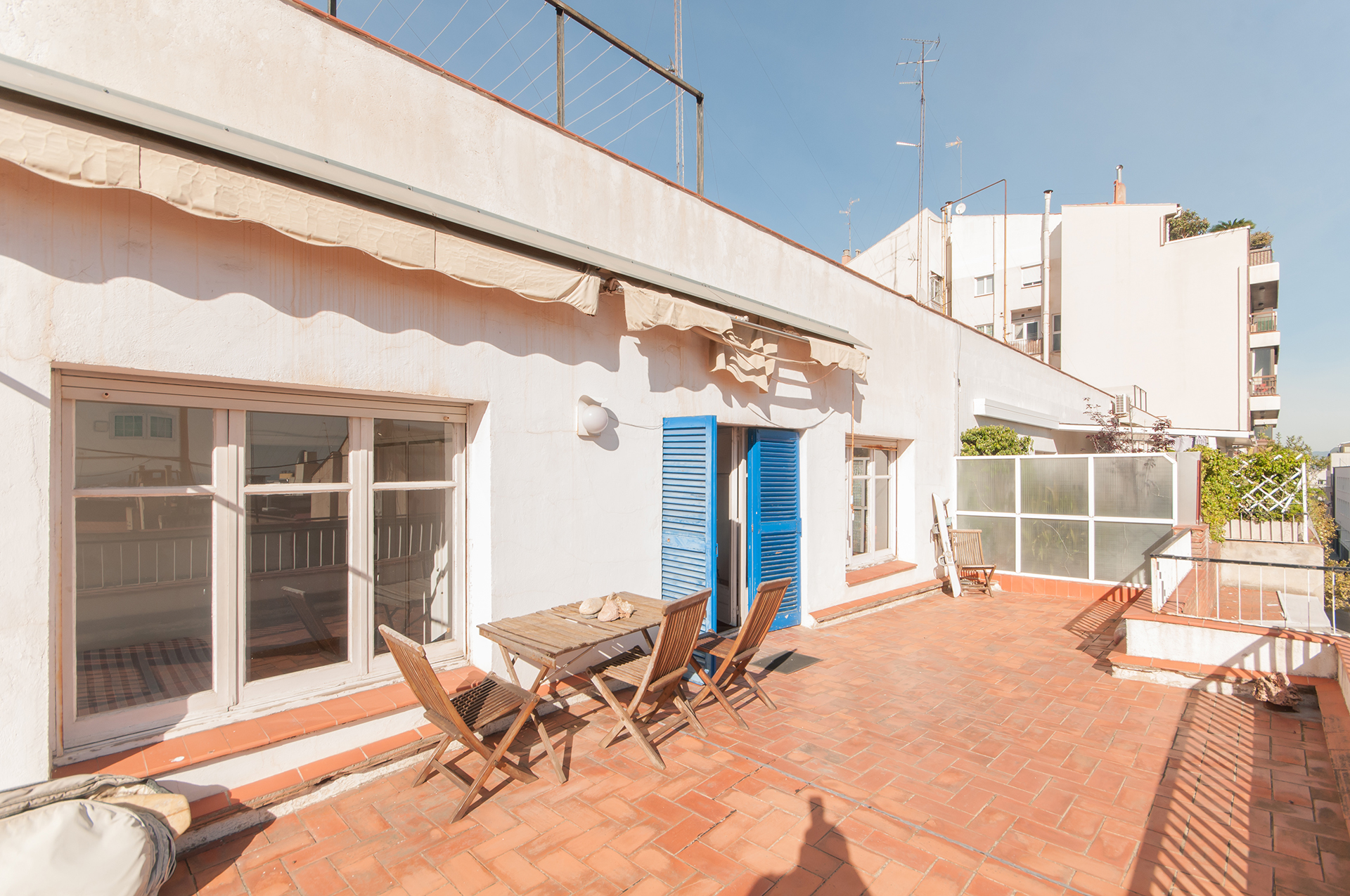 Aquest àtic consta de 84m2 distribuïts en ampli i còmode saló menjador amb accés directe a la terrassa de 60m2, 4 habitacions, dues dobles amb armaris encastats i grans finestrals orientats a la terrassa, i 2 individuals.