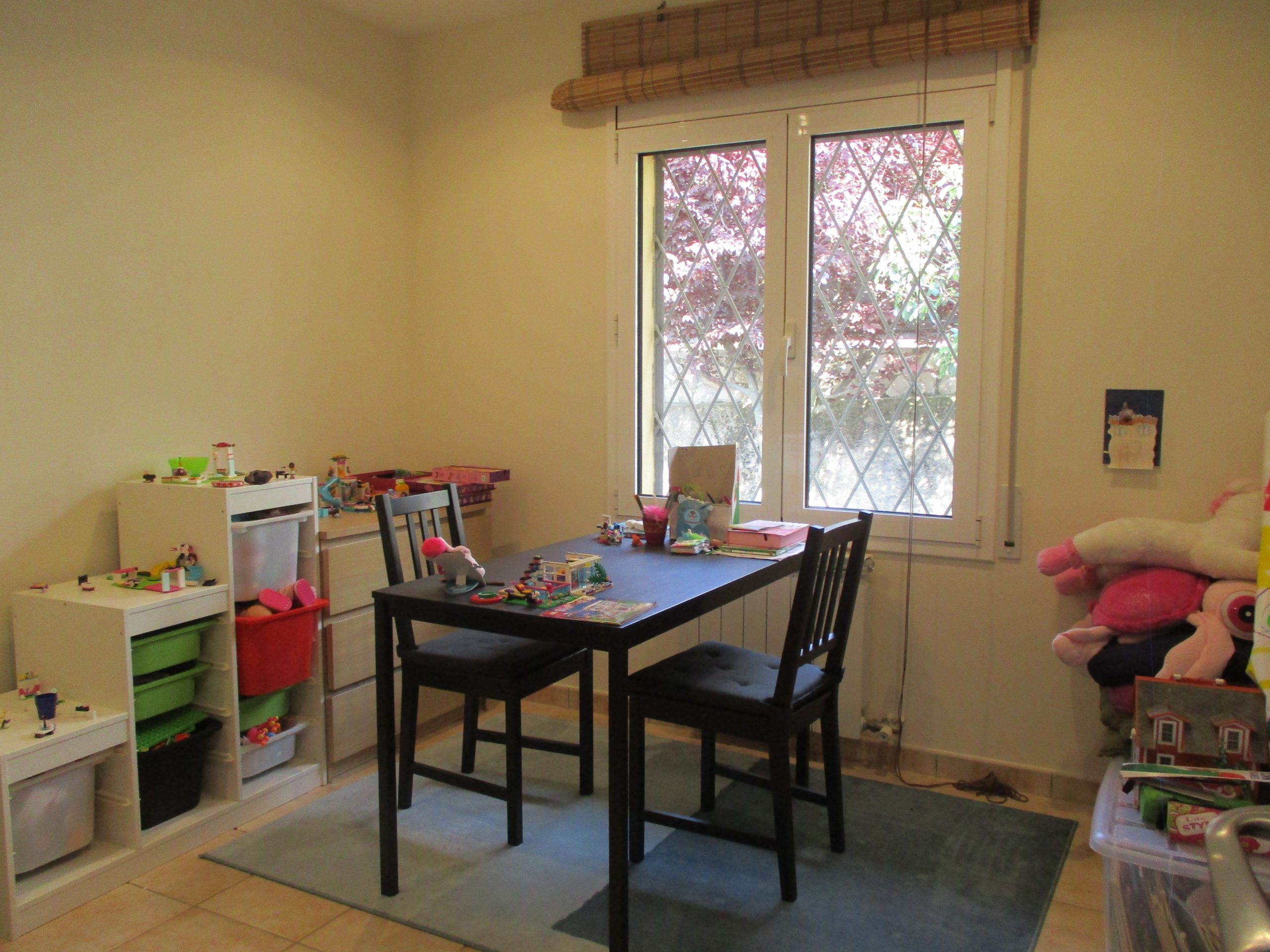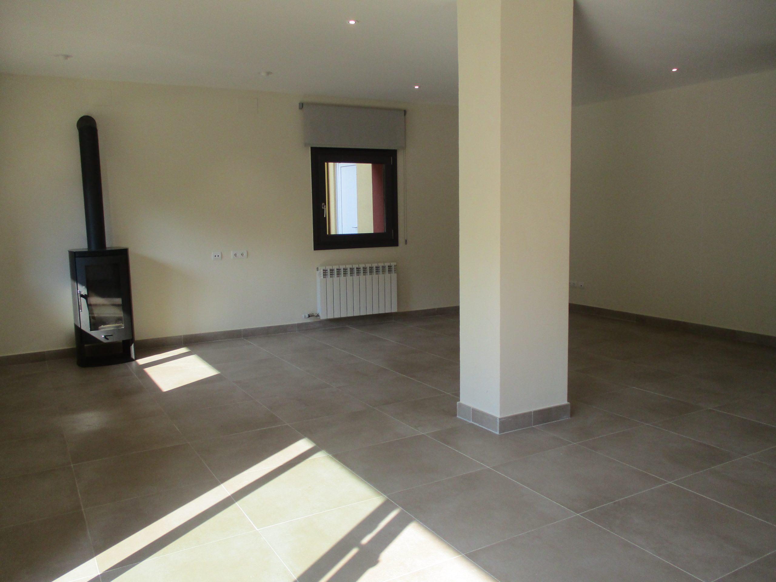A la planta semi soterrani gran sala de jocs amb estufa de llenya i sortida al jardí amb piscina, 1 lavabo. Garatge per a 1 cotxe (entrada pel carrer inferior). Disposa de calefacció de gas natural, finestres d’alumini, terres de parquet i terratzo.