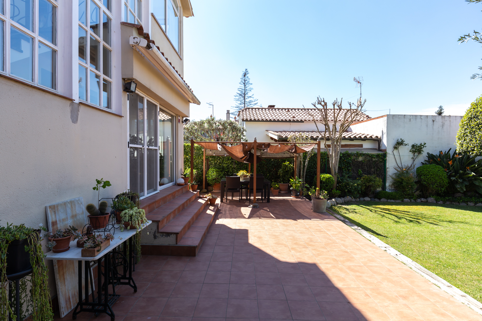 En una parcel·la de 367 m² amb terrassa i pàrquing, trobem aquesta acollidora casa a Sant Cugat.