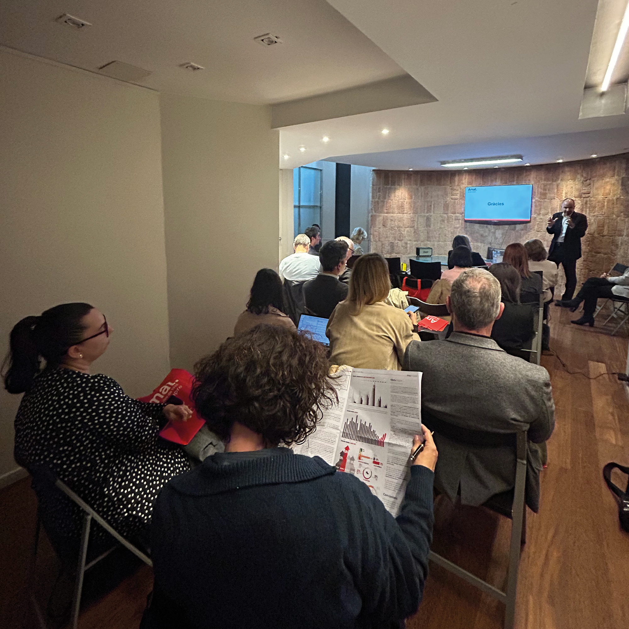 Uns 16 mitjans van assistir a la presentació que vam fer a la nostra oficina d’Amat Luxury de Balmes, on vam parlar de la manca d’oferta d’habitatges, especialment en el parc de lloguer, la crescuda dels llogaters estrangers, així com de l’augment de venda de 2a mà i de promocions d’obra nova.