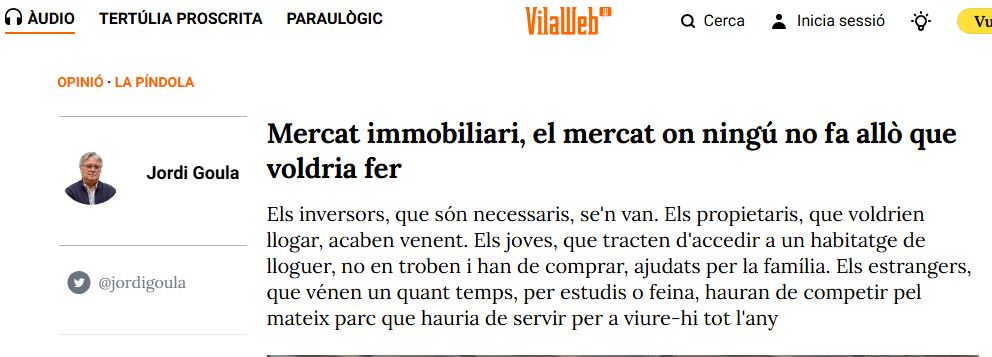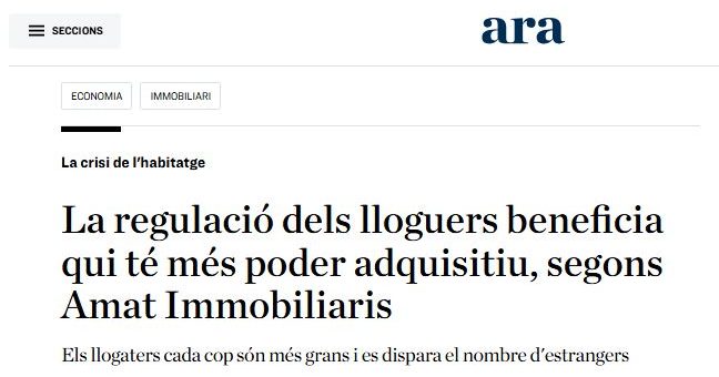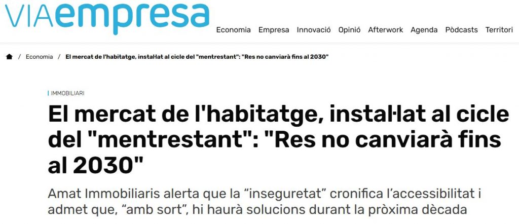 Analitzar l’habitatge s’ha convertit en un exercici cada vegada més complex. El mercat es troba en una situació de màxima tensió, i la percepció del seu funcionament depèn clarament del punt de vista: mentre que per a la demanda l’accés a l’habitatge és cada cop més difícil, per a l’oferta l’entorn regulador i la inseguretat jurídica condicionen fortament la presa de decisions.