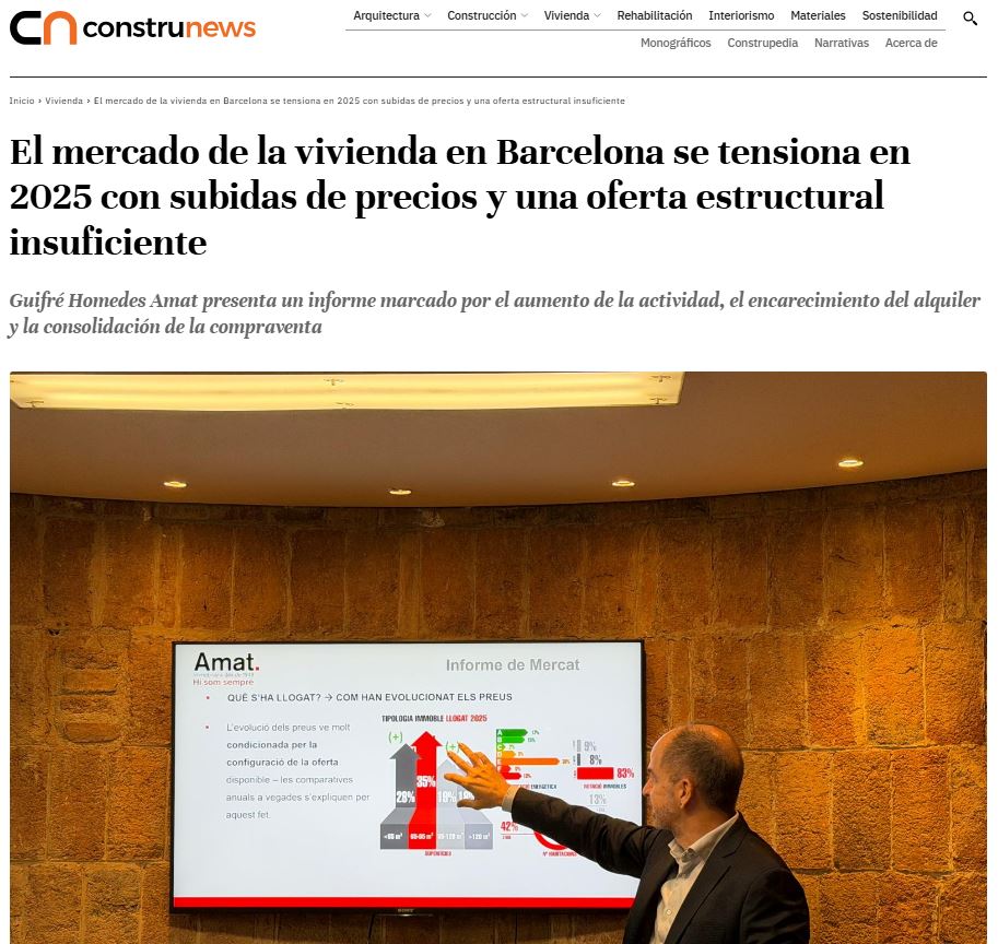 Un any més, aquest passat 18 de març, el nostre director general, Guifré Homedes, va presentar davant dels mitjans, el 13è Informe de Mercat 2025 d’Amat Immobiliaris, una anàlisi elaborada a partir de dades pròpies que permet entendre l’evolució real del mercat durant el 2025 i identificar les tendències que continuen marcant el sector.